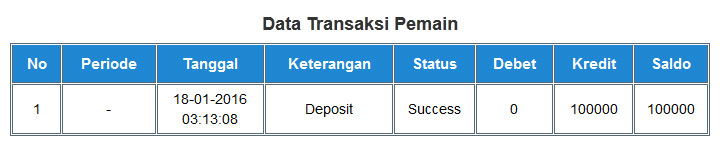 Jika deposit Anda disetujui Admin, maka akan tampak gambar seperti di bawah ini