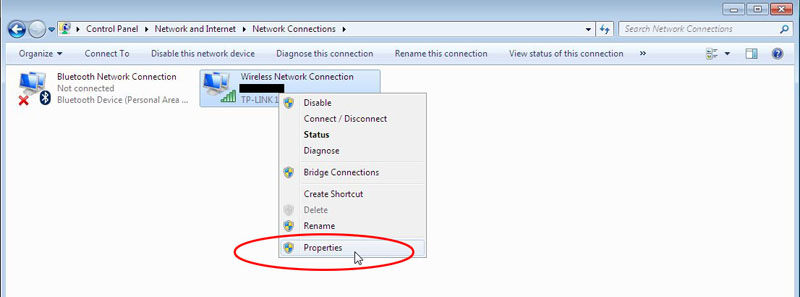 3. Untuk mengubah pengaturan untuk koneksi, koneksi nirkabel klik kanan Wireless Network, dan klik Properties.