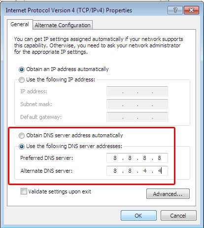 - Untuk Alternatif DNS server masukan : 8.8.4.4