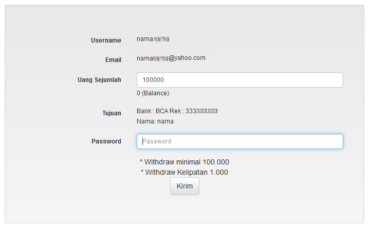 - Saldo Anda akan berkurang sesuai jumlah Anda tarik dana